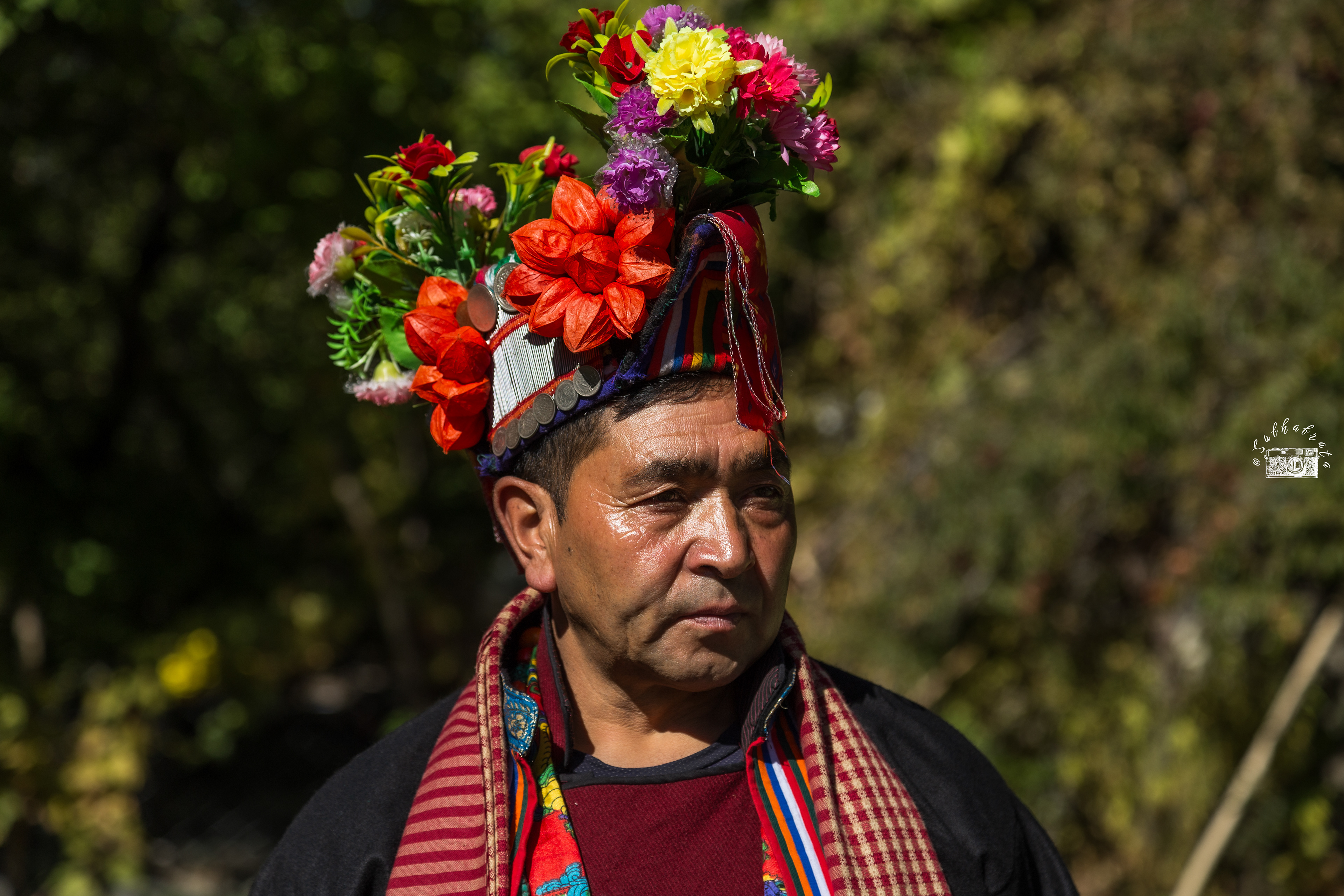 Distinctive in their cultural expression, the Drokpa community showcases a unique sense of dressing. Adorned in vibrant garments, they embellish their attire with colorful monthu tho flowers atop their headgear. Elaborate silver ornaments further enhance their ensemble, serving as supports for the intricate floral arrangements that adorn their attire.